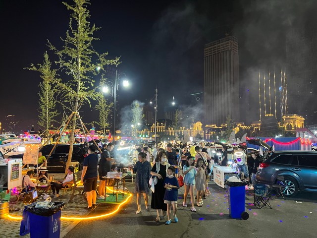 昨晚上去了广场的后备箱集市,这玩意就像玩飞盘一样现在特别就行。感觉还好吧,但是海边太潮了,身上黏糊糊的,不喜欢这种感觉。吃了几串烧鸟,味道比在日本的差很多啊。啥时候能去日本再吃呢?