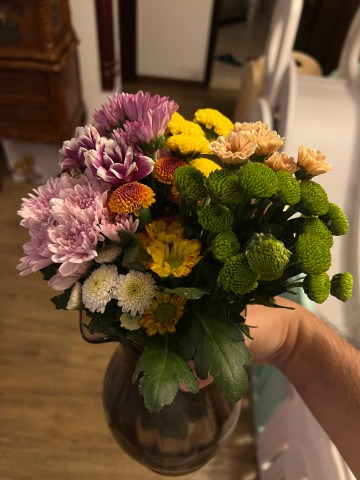 终于恢复团购鲜花了,买了一扎便宜的雏菊。看着挺好看。