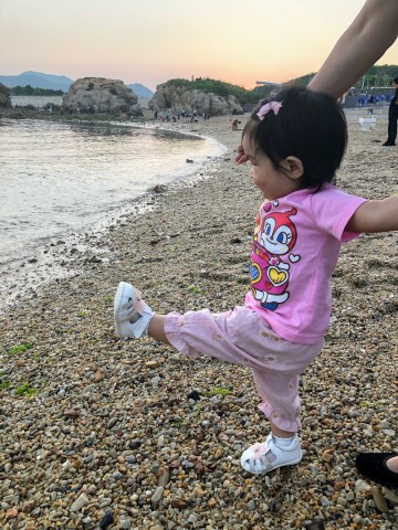宝宝很喜欢海边啊。每次来都很兴奋。